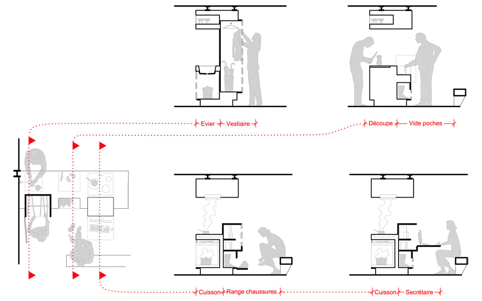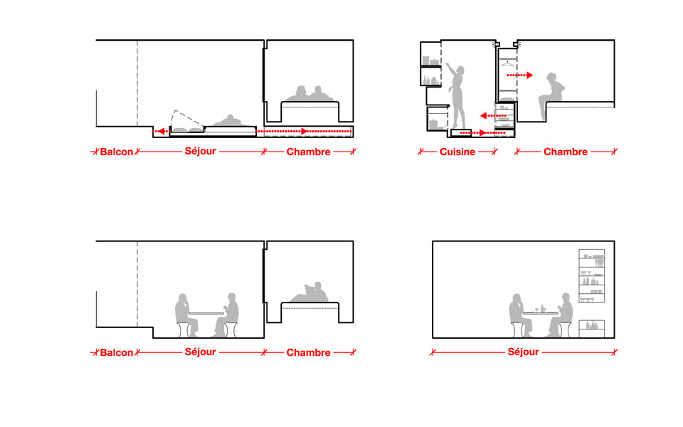 Dans la configuration de nuit la chambre se ferme et la cuisine et le séjour sont indépendant | projet MK/90-AS