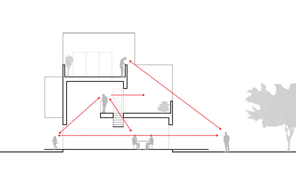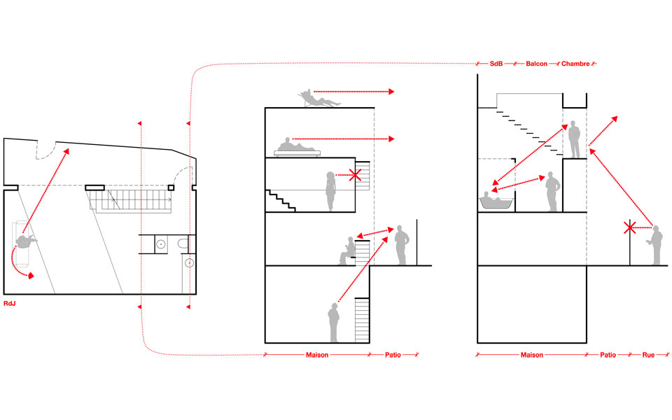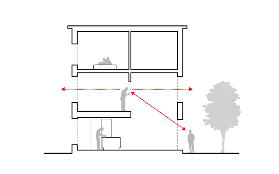 Les vues traversent de part en part la maison en passant par les exterieurs et les intérieurs | projet MK/05-GU