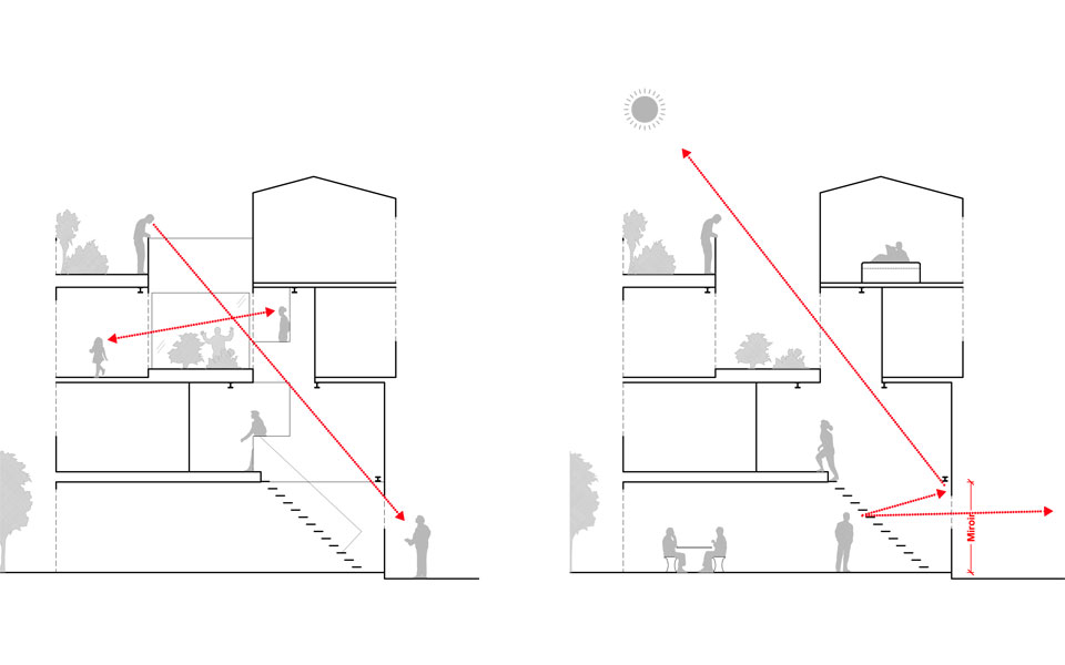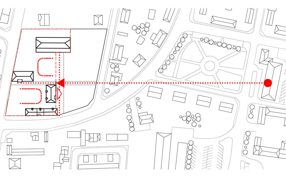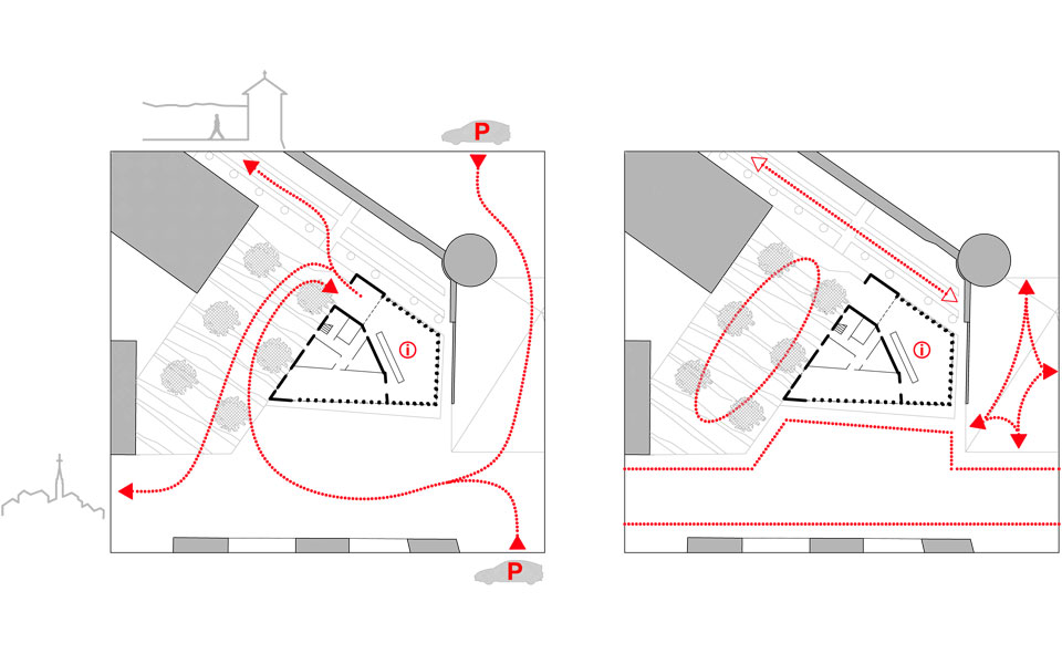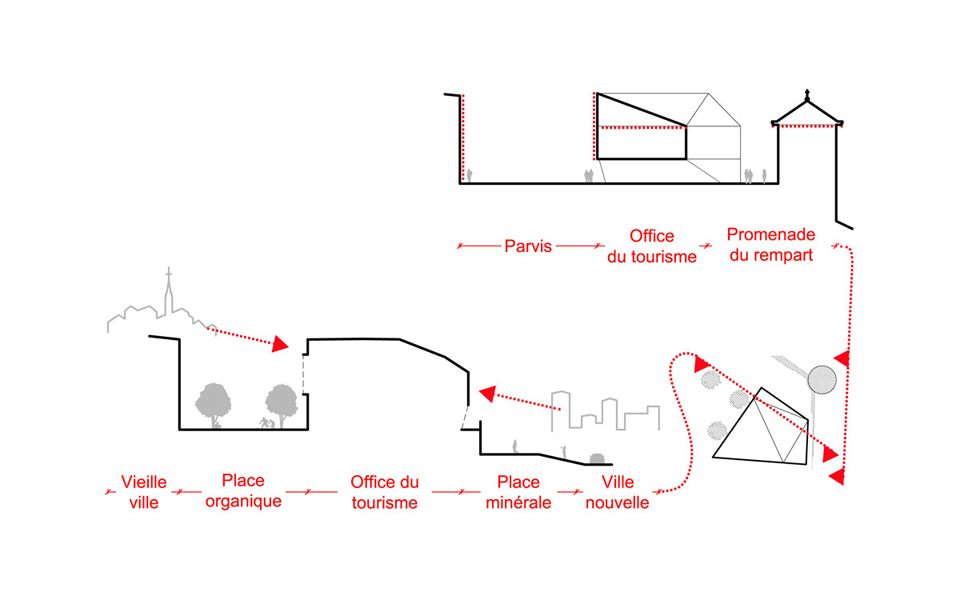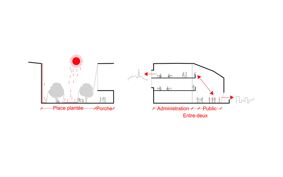 Réorientation du site vers la mairie par les ouvertures, les fonctions et les espaces extérieurs | projet MK/40-GS