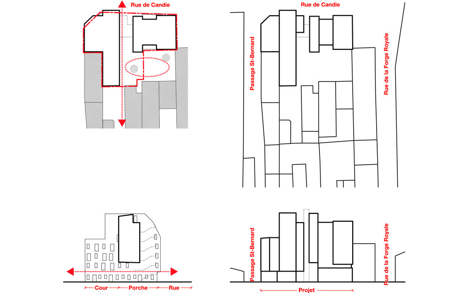 Les 4 façades regardent 4 espaces publiques penser selon les accès & départs et le contexte | projet MK/83-FR