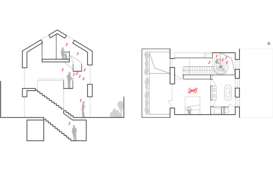 Un espace de circulation théâtral pour une chanteuse et des chambres isolées | projet MK/16-DM