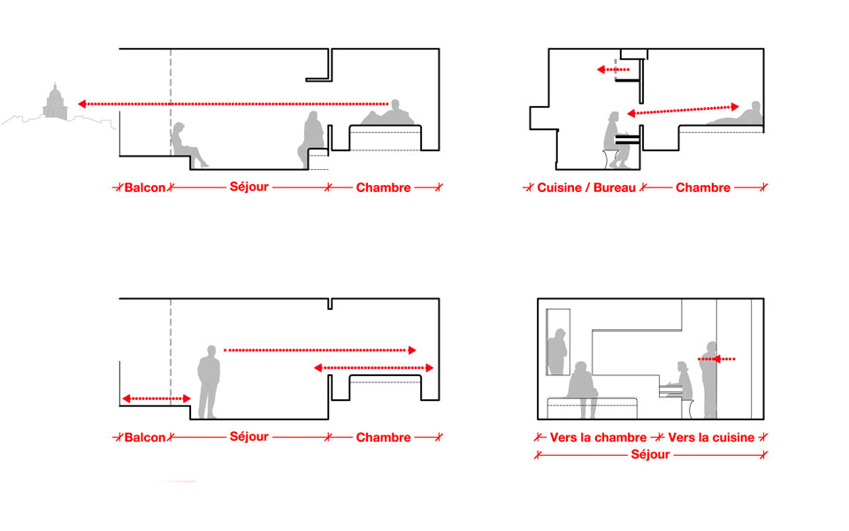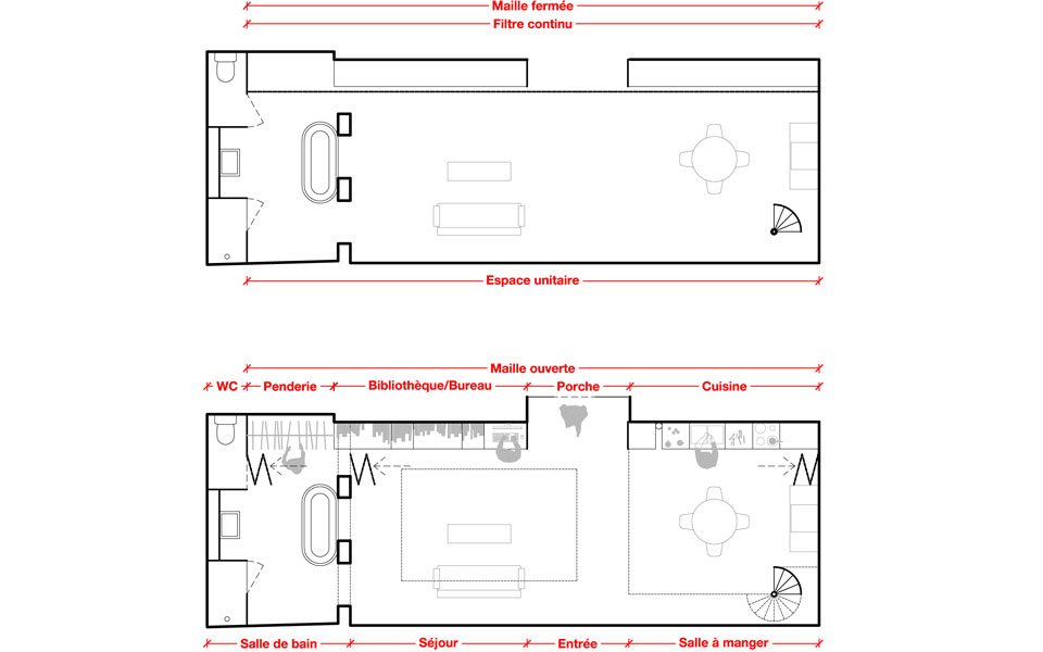 Dans la configuration de jour la chambre s'ouvre et les espaces se mettent en relation | projet MK/90-AS