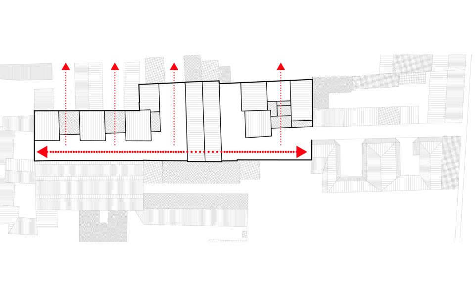 La façade reflète le plan dessiné dans la continuité du contexte tout en lanières | projet MK/10-CA
