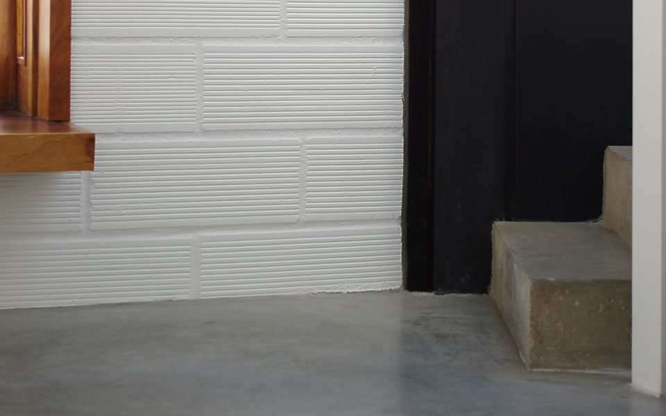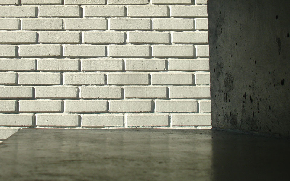 Reflet du mur de briques sur le béton lissé |