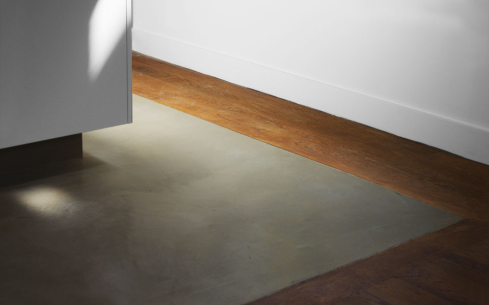 Changement de sol, du béton au parquet, de la cuisine à la salle à manger | projet MK/26-RO