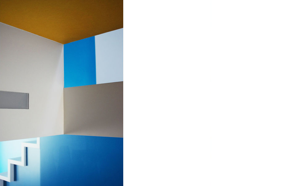 Médium jaune, laque bleue, peinture blanche |