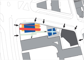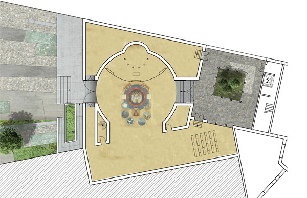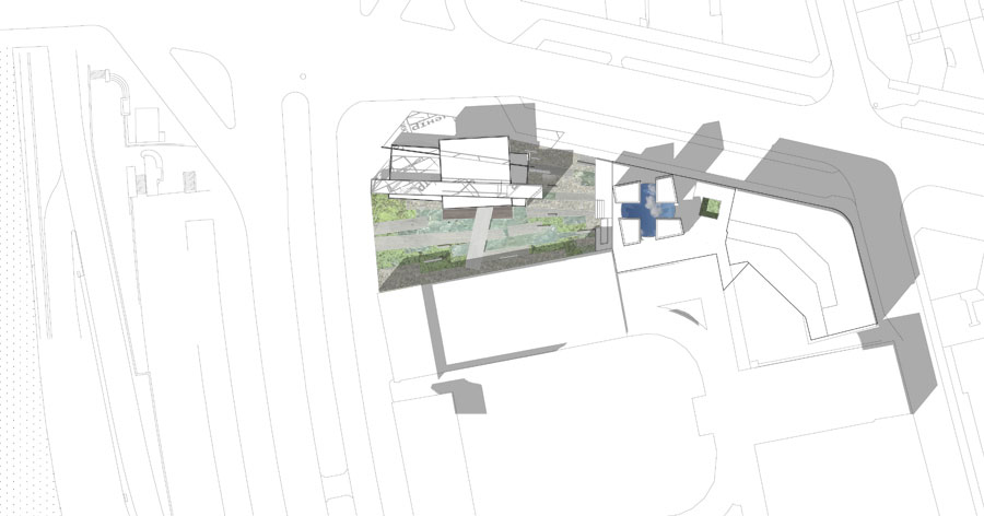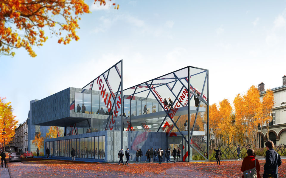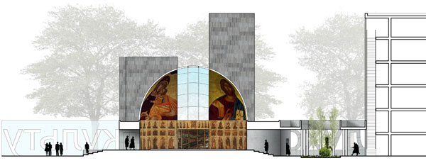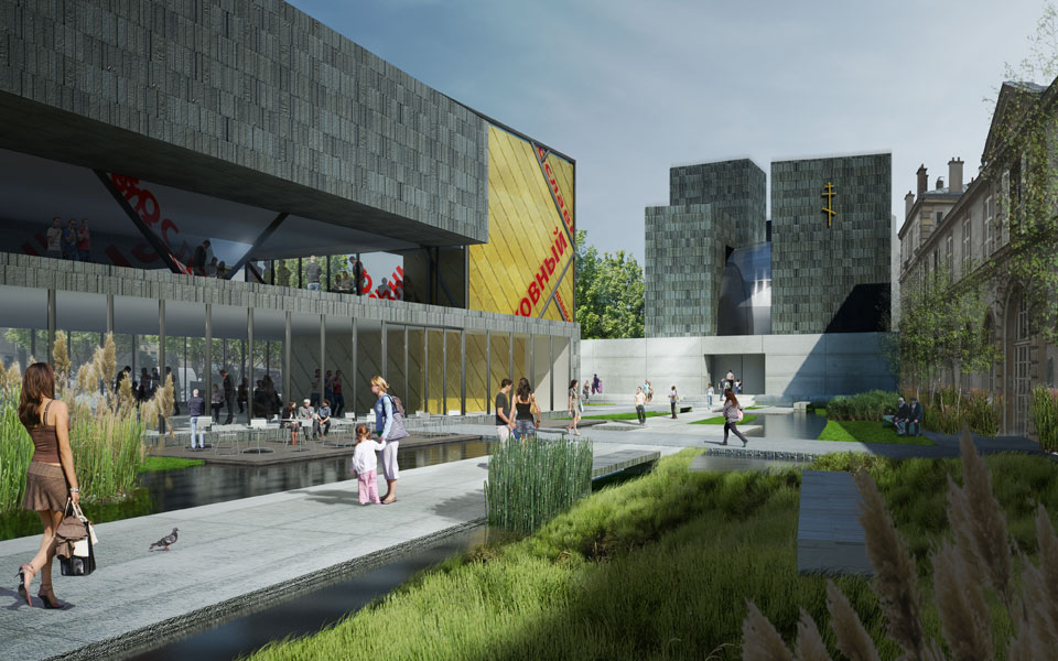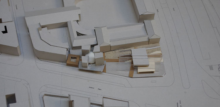 Trasparence vers la façade du palais depuis l'avenue Rapp.