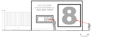 Le «grand huit», l'adresse, attire le regard et donne aux enfants une image gaie et dynamique de leur école, les invitant à entrer.
