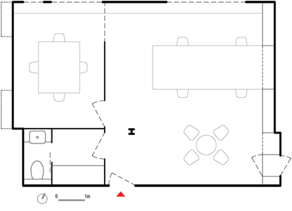 Les bureaux sont divisés en deux salles mises en relations par une fenêtre intérieure permettant de bénéficier de l'ensemble de la façade tout en gardant l'intimité des espaces.