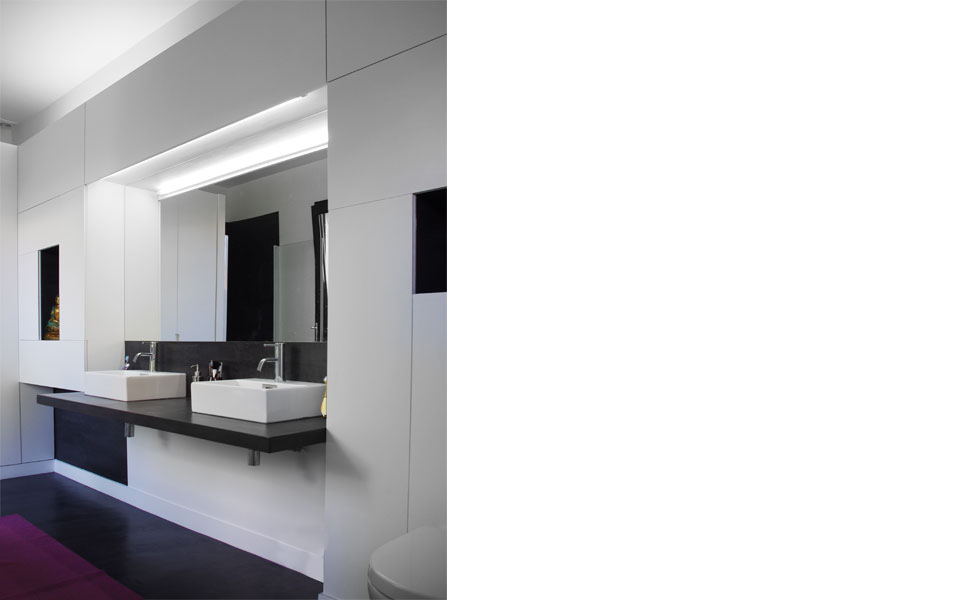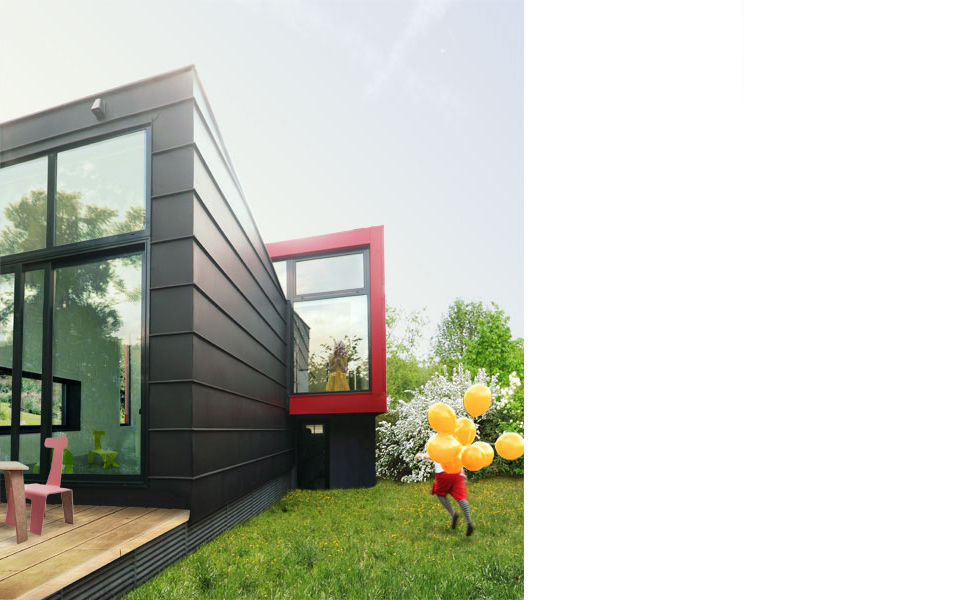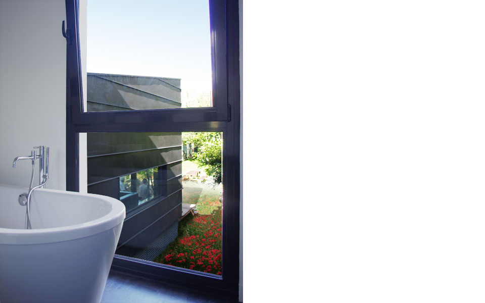 L'extension créée de petite taille est pensée comme une fenêtre permettant d'appréhender la totalité du jardin. L'extension est conçue pour créer une relation intérieur/extérieur forte, multipliant les points de vue et les sources de lumièrs. Les fenêtres sont des grandscadres sur jardin. Le jeu de toiture permet d'apporter de la lumière jusque dans les pièces existantes et de créer une volumétrie s'ouvrant sur l'extérieur.