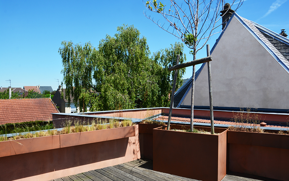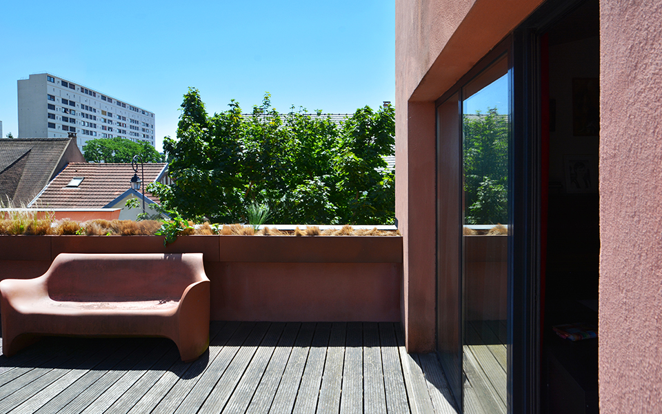 - Le dernier niveau, à +6,2 m, comporte le bureau de M. Chupin et s’ouvre sur une terrasse au-dessus du séjour.