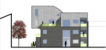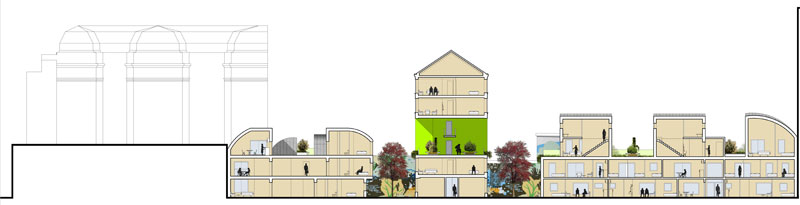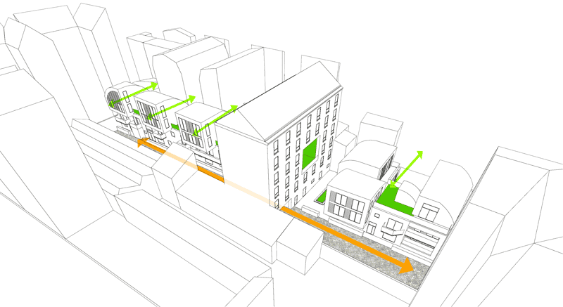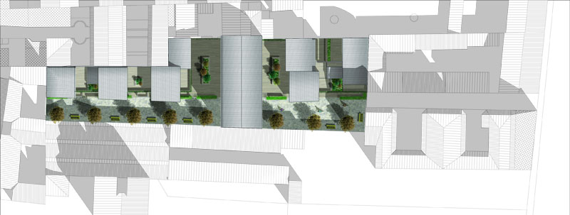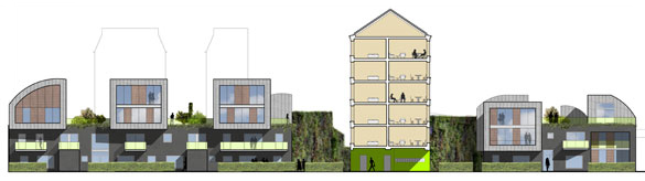 Créer un niveau vert (plancher haut du R+1) continu sur toute la longueur de la parcelle.