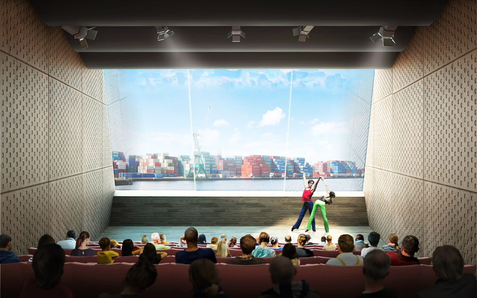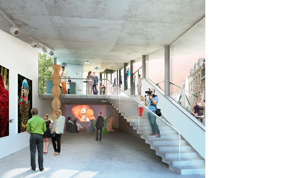 La partie basse du centre culturel est une promenade urbaine prolongeant la rue dans un espace d'exposition. Les lignes brisées du volume haut ont étés dessinées depuis l'intérieur pour optimiser l'acoustique de la salle de spectacle de 150 places. Profitant des perspectives dégagées, l'édifice devient un observatoire du paysage urbain et maritime au travers des grandes baies vitrées.
