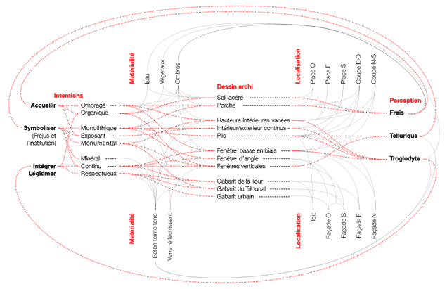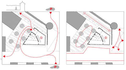 2- un parvis met en relation le tribunal de grande instance et la façade Sud du projet de l’office de tourisme.