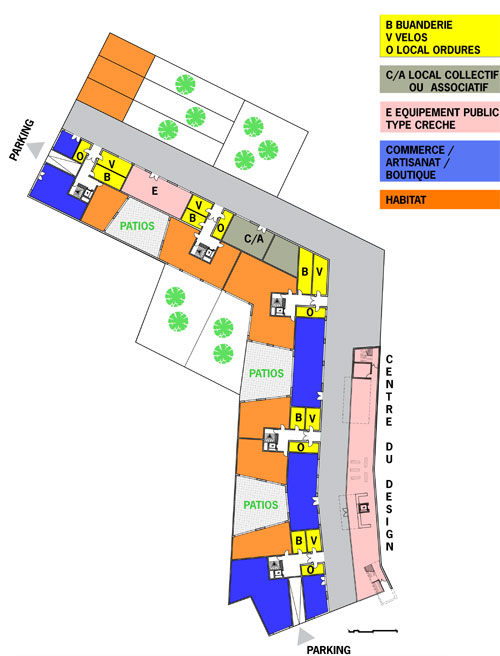 Les logements assurent une certaine mixité multi générationnelle et sociale. Cependant une grande majorité est destinée aux familles. L’ensemble des logements est accessible aux personnes à mobilité réduite. Les personnes âgées désireuses de retourner en ville auront des logements adaptés et des services correspondants (centres médicaux, locaux associatifs dédiés…).